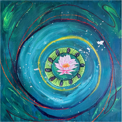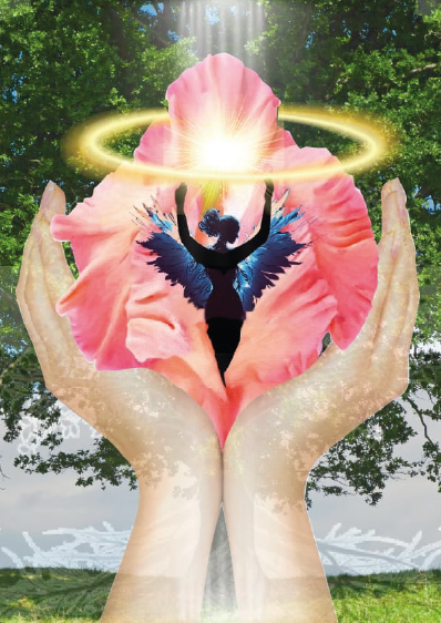 Digital collage artwork honouring the softness and strength of sacred feminine devotion – grounded, glowing and divine.